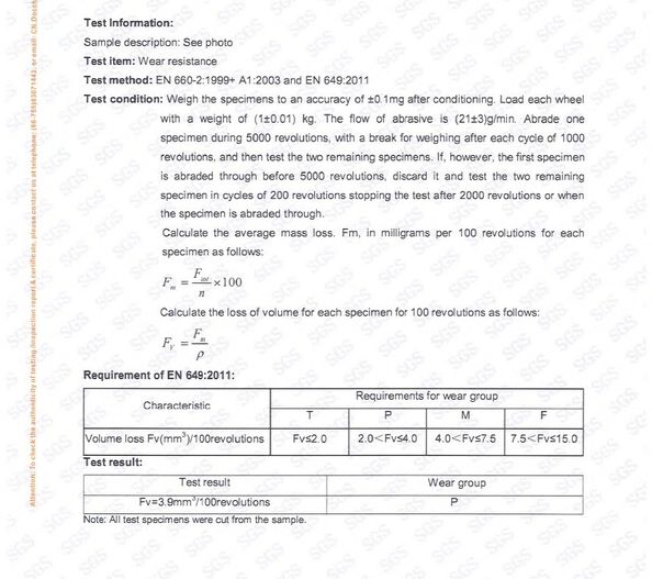 | Standard: | WEAR RESISTANCE |